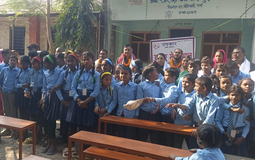 Distribution of wooden desks to Shree Nepal Red Cross Basic School in Parsa District was carried out in the presence of students, teachers, and social workers. Our Admin Officer, Mr. Nawal Kishor Singh, attended the wooden desk distribution program at the school.